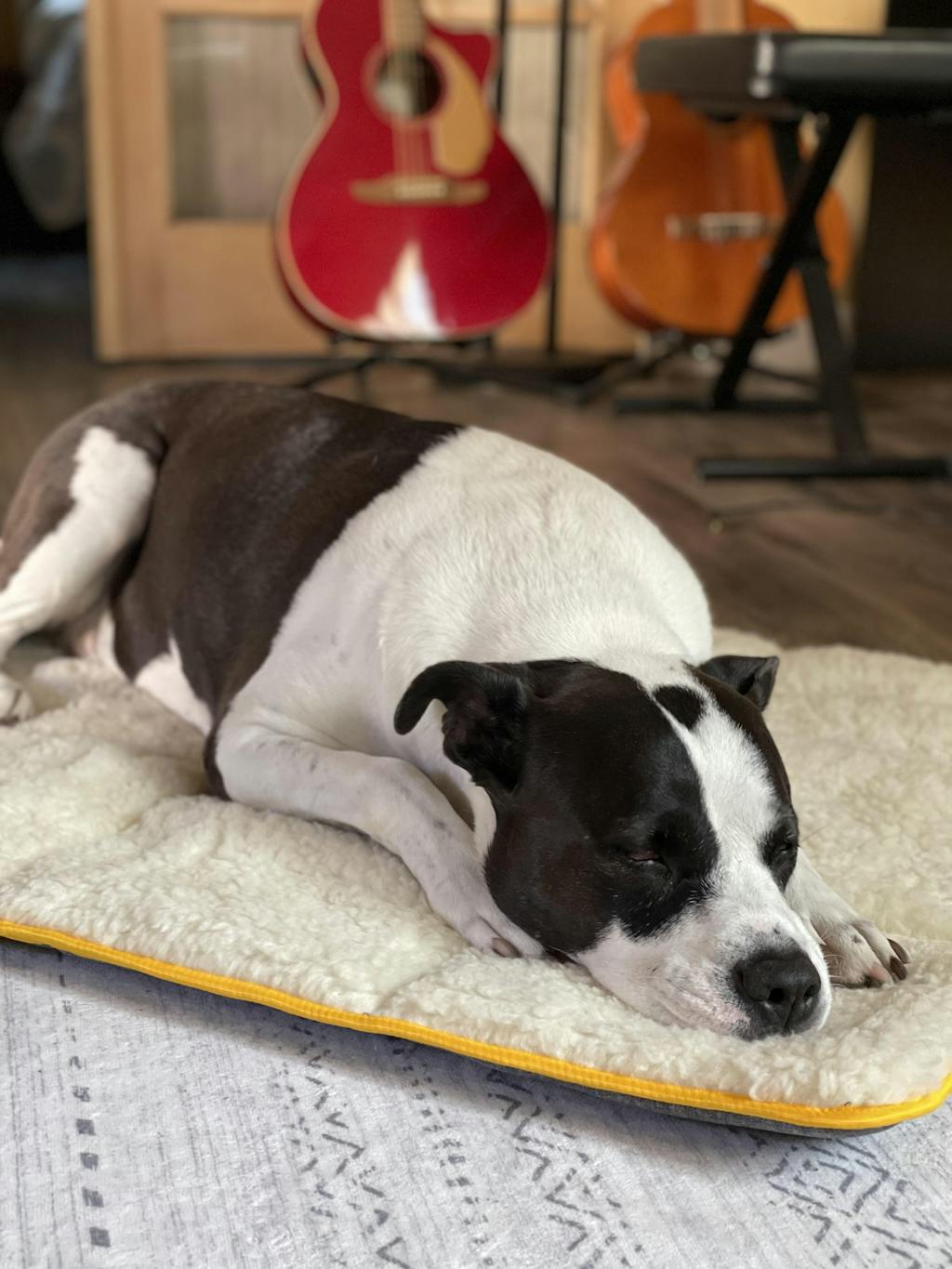 My Kelpie Collie Cross Lumi is very happy with her cosy Mat! Had to train her to not bite it and to just ly on it :)