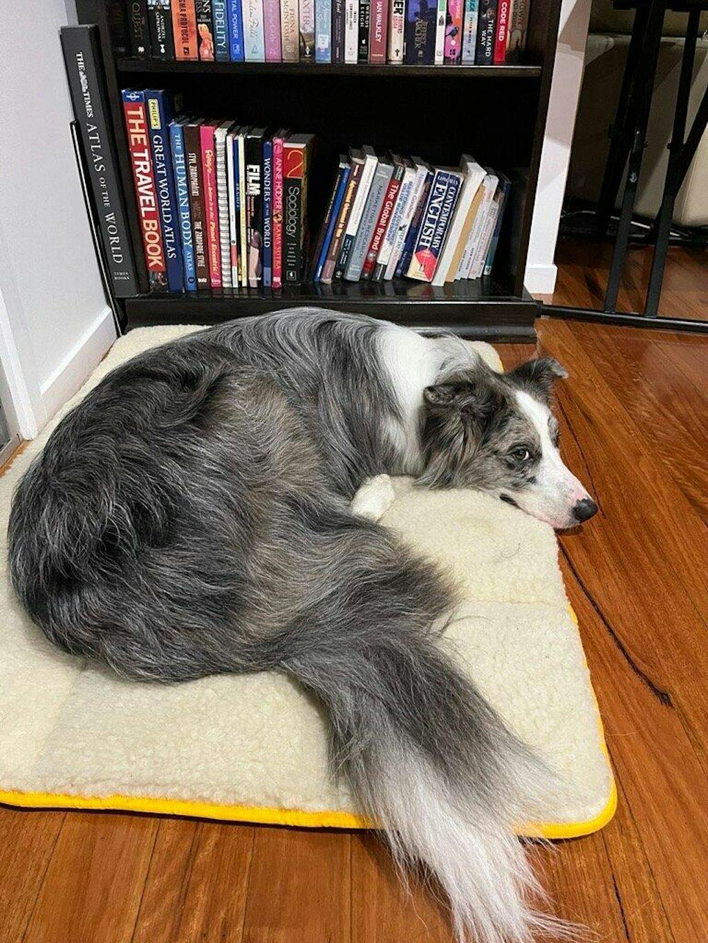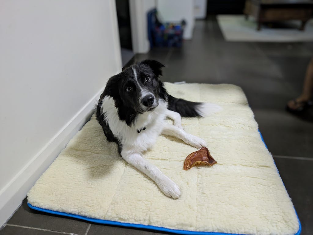 Kelpies are clever and full of energy, so we’re very impressed she learned it’s for lying on, not chewing! Once they realise how comfy the wool mat is, they usually don’t look back.
