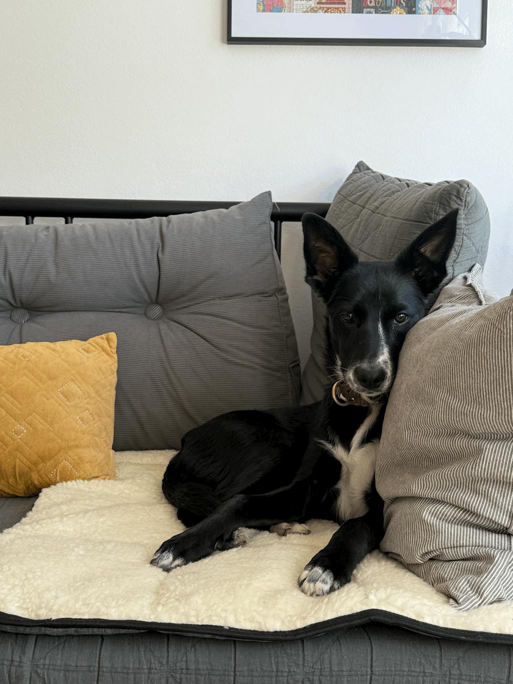 Our dear arthritic girl Sansa took to her Baa Baa extra large bed straight away. It’s a beautifully crafted product and we’ve placed it on top of her spot on the couch . She gets extra comfort and I get peace of mind knowing it’s also protecting the furniture. It’s perfect in size for bigger dogs and so padded. Great product folks!