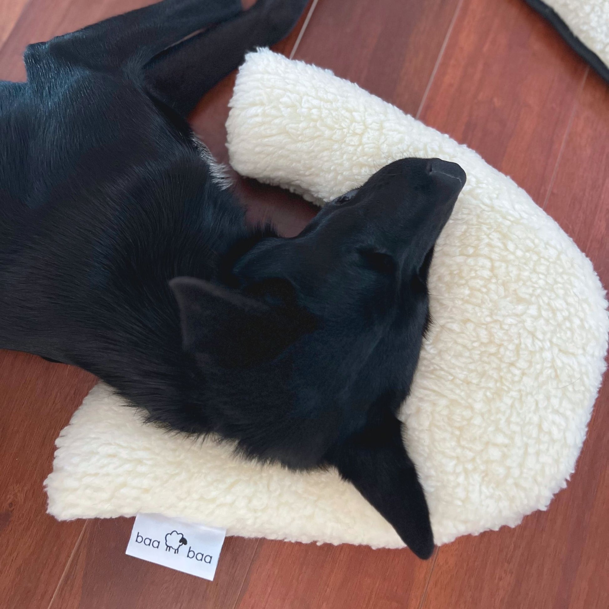 The team at BaaBaa yet again makes a genius product! Our pup Emerald adores her new wool pillow! Makes checking on the neighbours a breeze for this little diva!