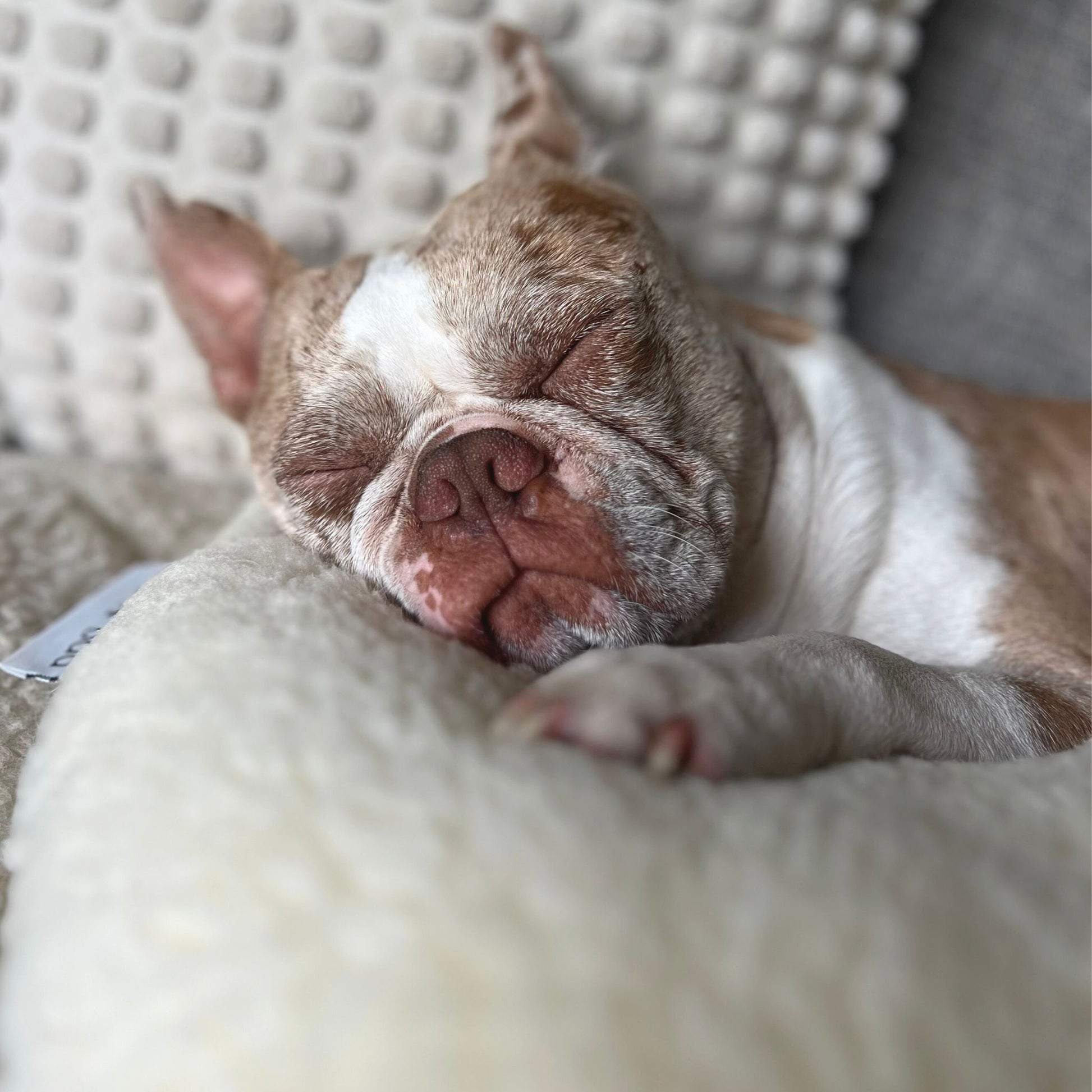 I’m Henry. I’m a bit older now, and comfort means everything to me. My human brought home this wool pillow, and honestly… I haven’t wanted to move since.